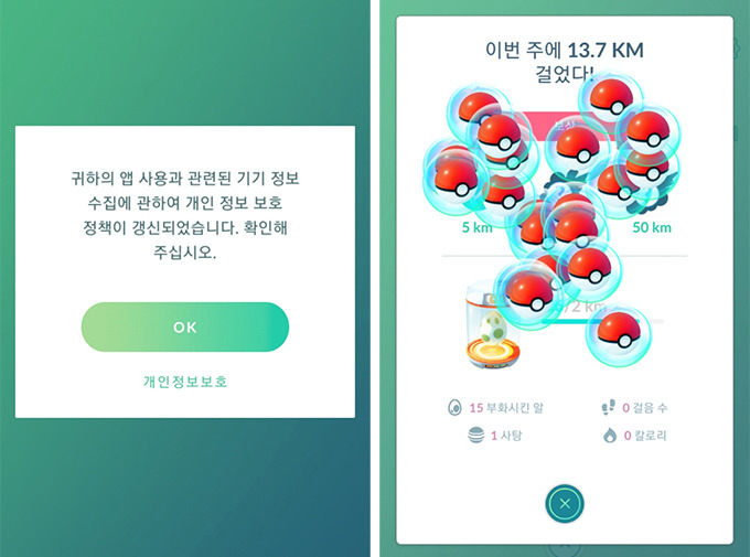 | 푸시 알림으로 파트너 거리, 알의 부화 등을 알려줌 |