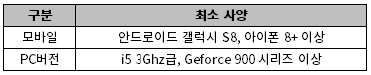 ㆍ최소 사양은 최적화 등의 작업으로 인하여 조정될 수 있습니다.