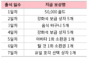이벤트 기간 동안 게임에 접속하시면 7일 동안 골드, 아바타 소환권 등