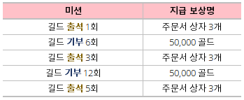길드에 가입한 후 길드에서 열심히 활동하면 미션 달성 조건에 따라 보상을 드릴 예정이니