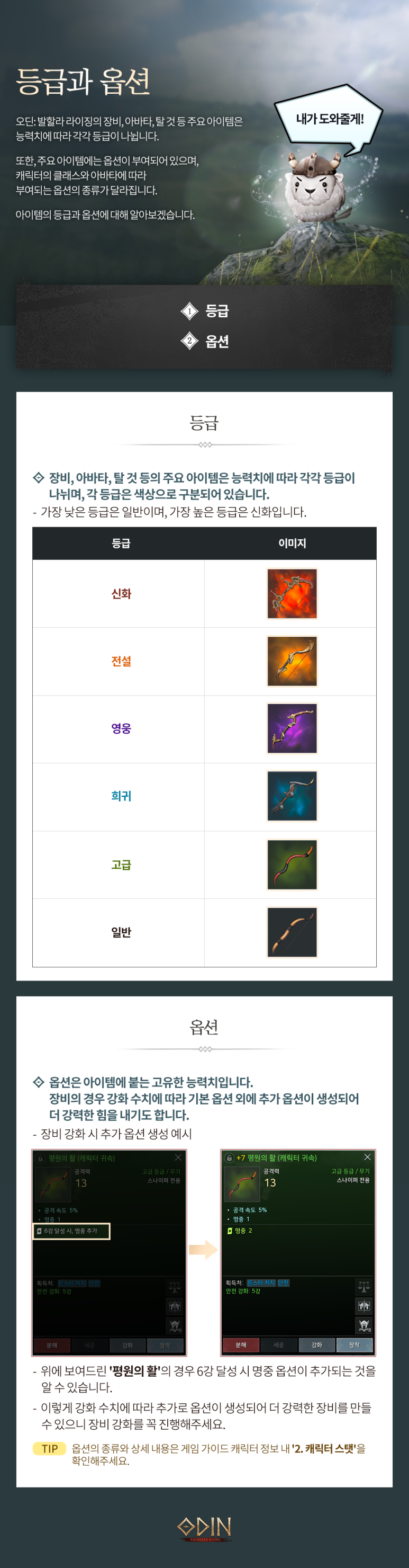 아이템의 등급과 옵션에 대해 알아보겠습니다.