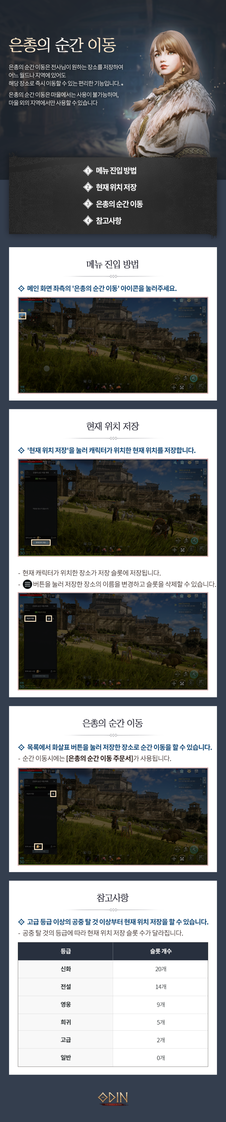 은총의 순간 이동은 전사님이 원하는 장소를 저장하여