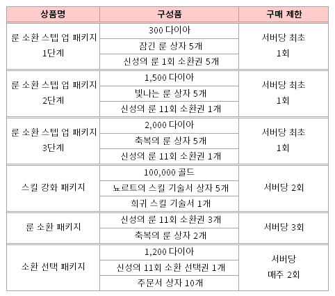 캐릭터당 구매 제한이 '일일 구매 제한'으로 잘못 표기되어 있습니다. 게임 이용에 혼란을 드려 죄송합니다.