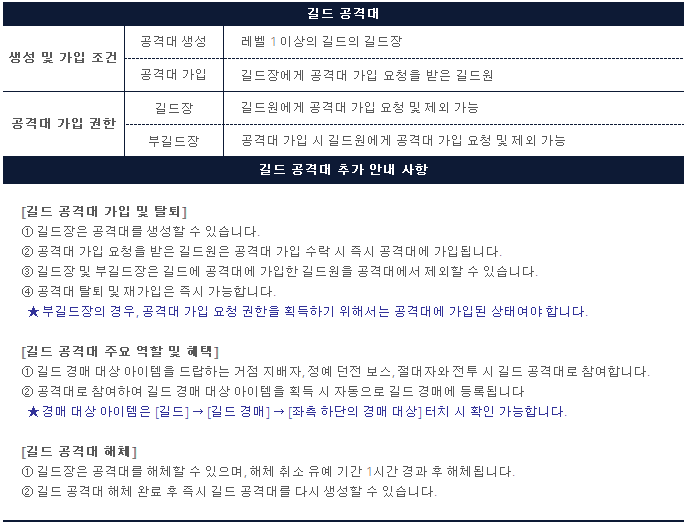 · 공격대에 대한 더욱 자세한 내용은 게임 가이드 [공격대]에서 확인하실 수 있습니다.