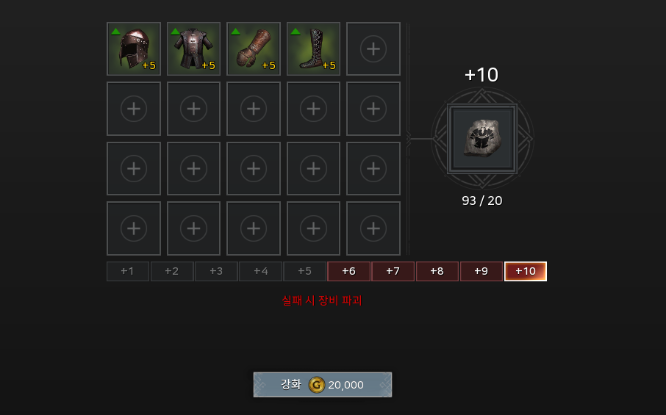 - 같은 분류의 장비여도 안전 강화 단계가 다를 경우 멀티 강화를 동시에 진행할 수 없습니다. (Ex. 방어구 - 투구&망토)