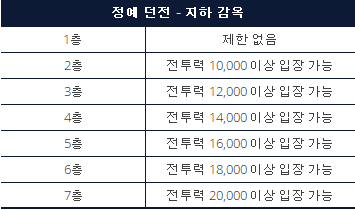 - 지하 감옥 밸런스 조정을 위해 입장 조건이 전투력으로 변경됩니다.