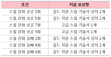 - 스킬 강화를 시도하여 성공하거나 실패한 횟수에 따라 보상을 드려요!