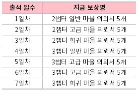 - 이벤트 기간 내에 게임에 접속 시 매일 마을 의뢰서 추가 지급