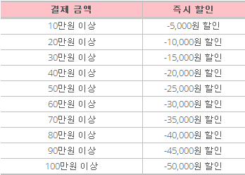 - 결제 시 금액 대 별로 즉시 할인이 적용됩니다.
