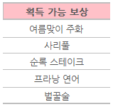 · 여름맞이 주화와 보상의 경우 캐릭터 귀속 아이템으로 지급됩니다.