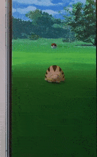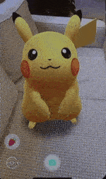 AR+을 이용한 파트너와 놀아주기 예시, 포켓몬 SM과 마찬가지로 포켓몬을 쓰다듬을 수 있습니다.