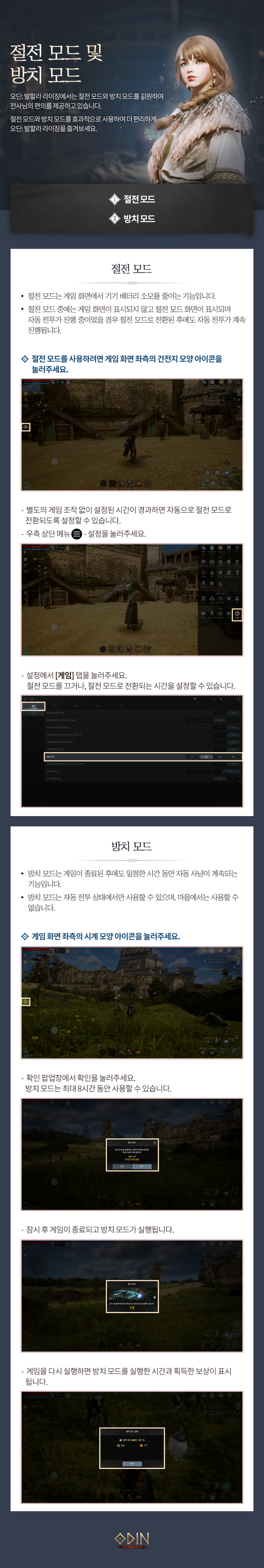 [오딘:발할라 라이징] 절전 모드 및 방치 모드 가이드